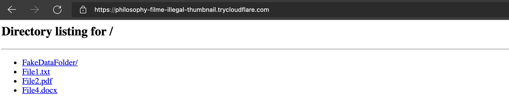 Now you should be able to browse the URL returned by argo tunnel from anywhere in the world and download the contents served off this server.